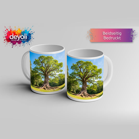 Motivtasse Ein majestätischer Baum, fest verwurzelt im Licht.