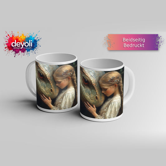 Motivtasse Magischer Pakt – Mädchen und Drache im stillen Vertrauen.