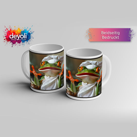 Motivtasse Kochender Frosch in Aktion – ein Sprung ins Aroma.