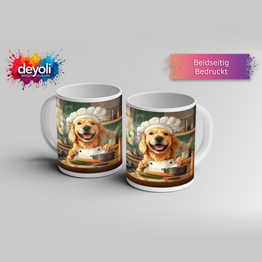 Motivtasse Golden Retriever kocht mit Herz und guter Laune.
