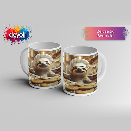 Motivtasse Faultierbäcker zaubert süße Träume in Zeitlupe.