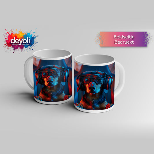 Motivtasse Gamer-Dackel – fokussiert, gestylt, bereit zu siegen.