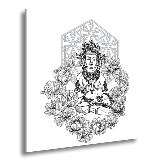 Leinwandbild Lotus umrahmt den Buddha in stiller, heiliger Linie.
