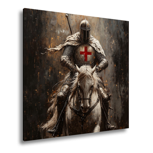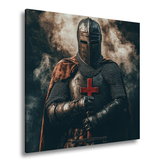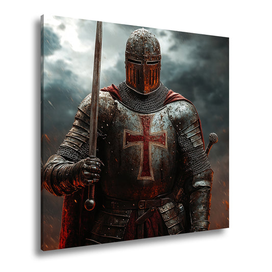 Leinwandbild Ein Kreuzritter trotzt der Zeit in eiserner Entschlossenheit