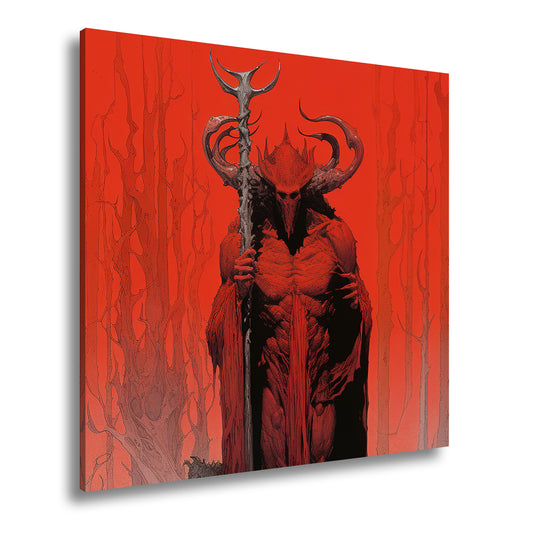 Leinwandbild Herr der Schatten – Dämonengestalt in blutrotem Inferno.