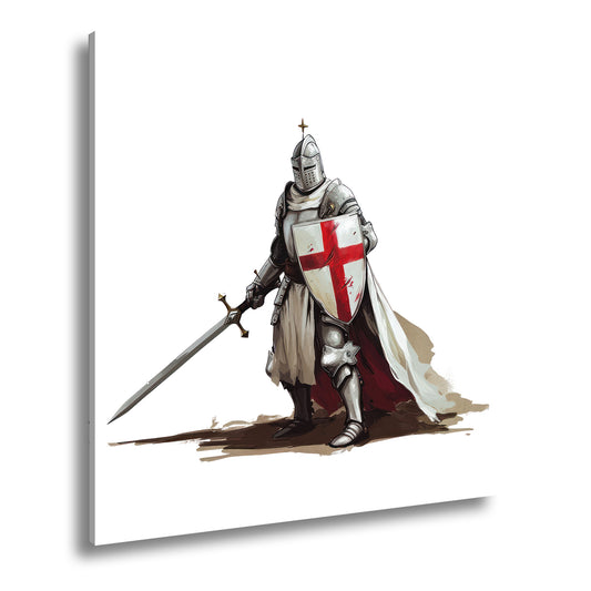 Leinwandbild Krieger in Stahl, das Kreuz auf Schild und Schwert bereit.