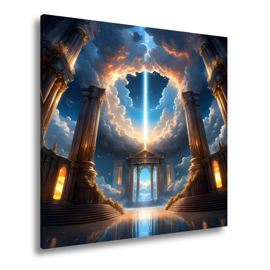 Leinwandbild Das Himmelsportal öffnet sich im goldenen Strahl des Lichts.