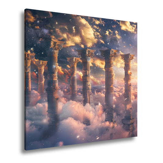 Leinwandbild Säulen schweben durch Sternennebel in göttlicher Dämmerung.
