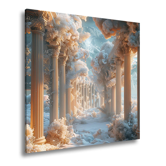 Leinwandbild Ein frostiger Tempelweg, gehüllt in schimmernde Eiskristalle.