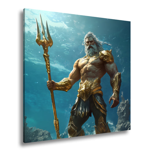 Leinwandbild Poseidon steht – Herr der Tiefe, golden und göttlich.