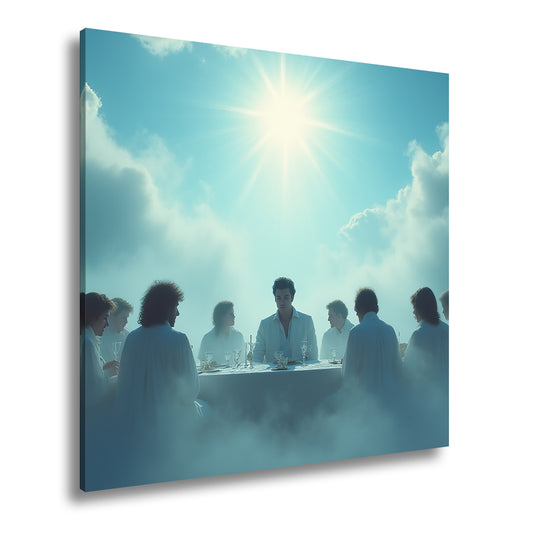 Leinwandbild Himmlisches Mahl unter strahlender Sonne in den Wolken