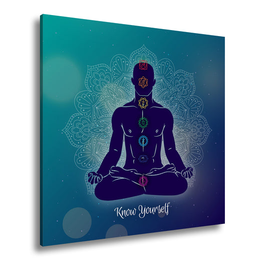 Leinwandbild Meditierende Silhouette leuchtet in den Farben der Chakren