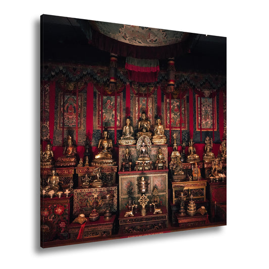 Leinwandbild Goldene Buddhas thronen in einem Meer aus rotem Samt.