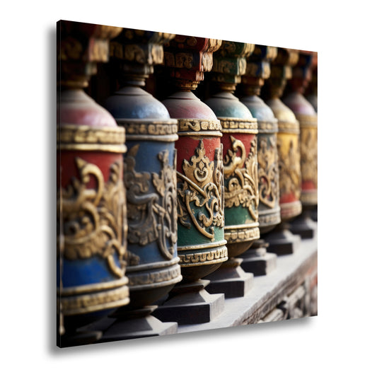 Leinwandbild Gebetsmühlen flüstern uralte Mantras im Farbenspiel.