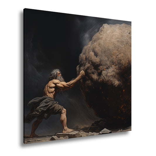 Leinwandbild Sisyphos’ Kampf – der Berg als endlose Prüfung.