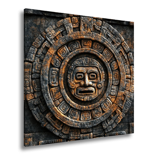 Leinwandbild Steinerne Sonne mit mystischer Maya-Symbolik.