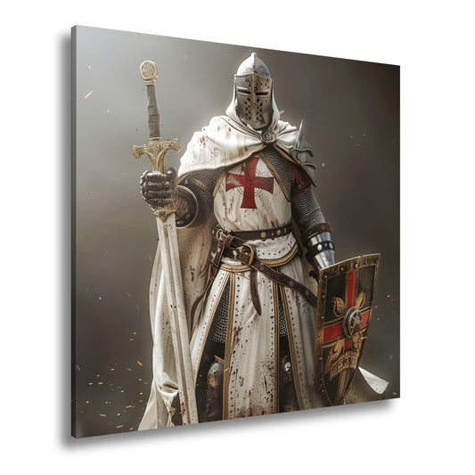 Leinwandbild Kreuzritter in edler Rüstung, bereit zur Schlacht.