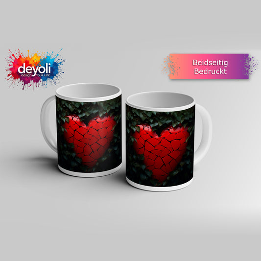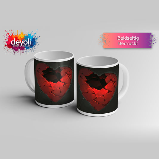 Motivtasse Zersprungenes Herz offenbart dunkle Leere der Sehnsucht.