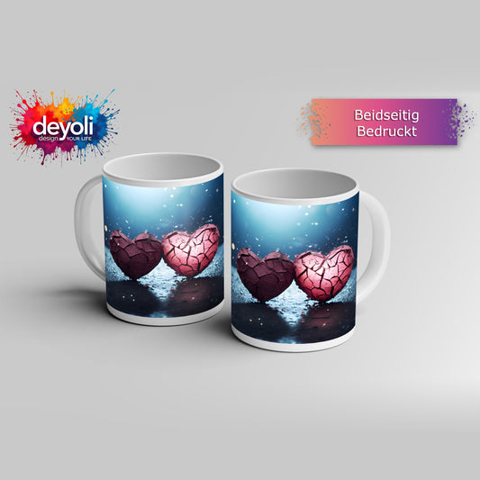 Motivtasse Zwei gebrochene Herzen – vereint in stiller Stärke.