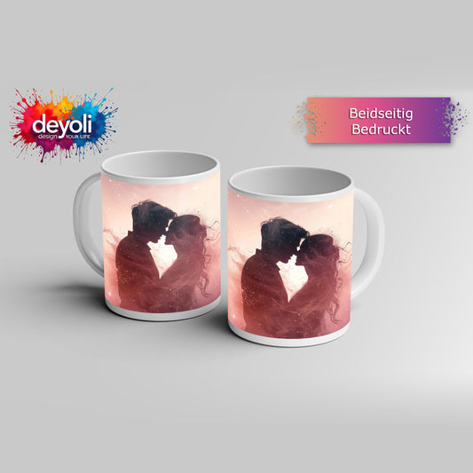 Motivtasse Liebessilhouetten – flüchtig wie Rauch, innig wie ein Kuss.