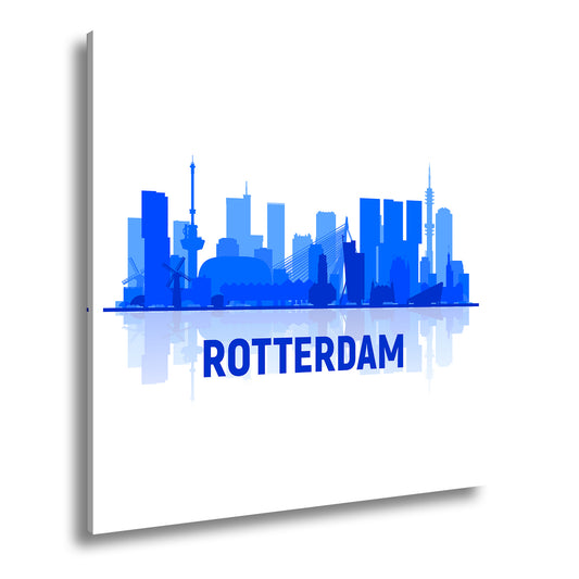 Leinwandbild Rotterdam Skyline Blau – Moderne Stadtsilhouette XXL Canvas