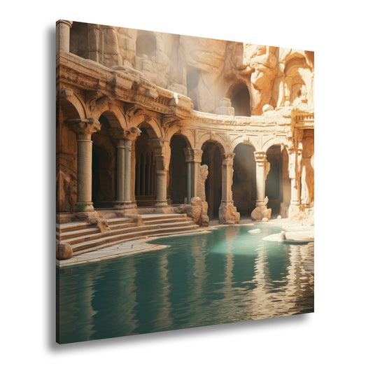 Leinwandbild Verwunschene Therme aus Stein und Stille.