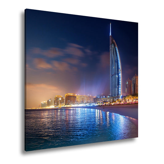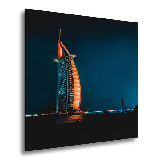 Leinwandbild Burj Al Arab XXL – Leuchtet kraftvoll in der Nacht