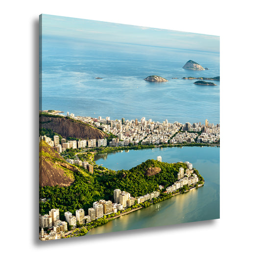 Leinwandbild Smaragdgrüne Küste trifft auf schimmerndes Stadtpanorama