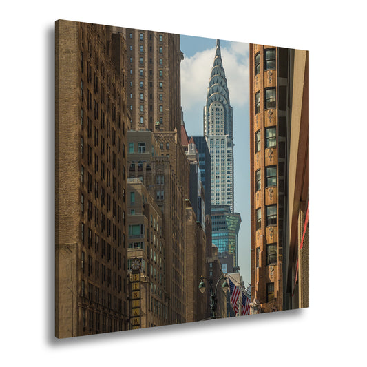 Leinwandbild Chrysler Building glänzt art-déco-elegant zwischen warmen Fassaden