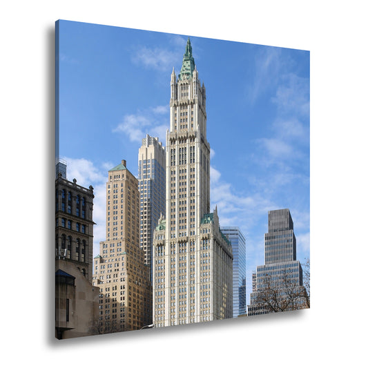 Leinwandbild Die Woolworth-Ikone steigt neugotisch in den blauen Winterhimmel