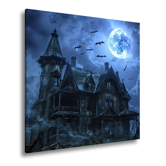 Leinwandbild Spukhaus im Mondschein und flatternden Schatten
