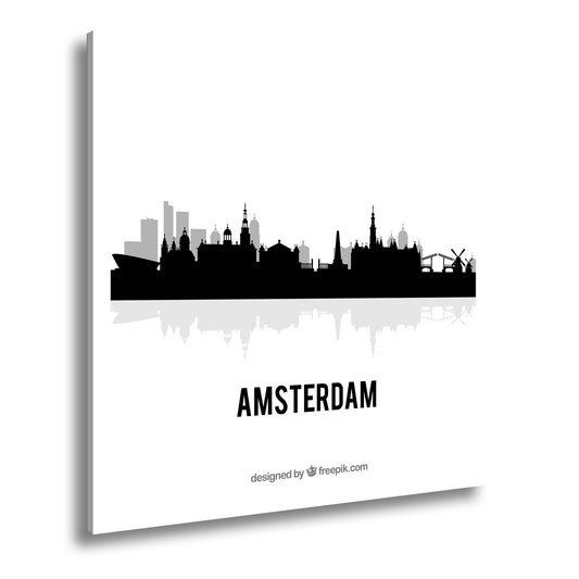 Leinwandbild Schwarze Skyline von Amsterdam mit klassischem Flair