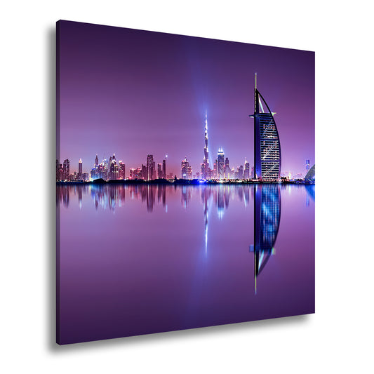 Leinwandbild Dubai XXL – Skyline in lila-glänzender Nacht