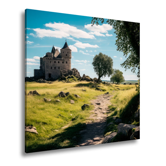 Leinwandbild Verlassene Burg thront majestätisch im goldenen Feld.