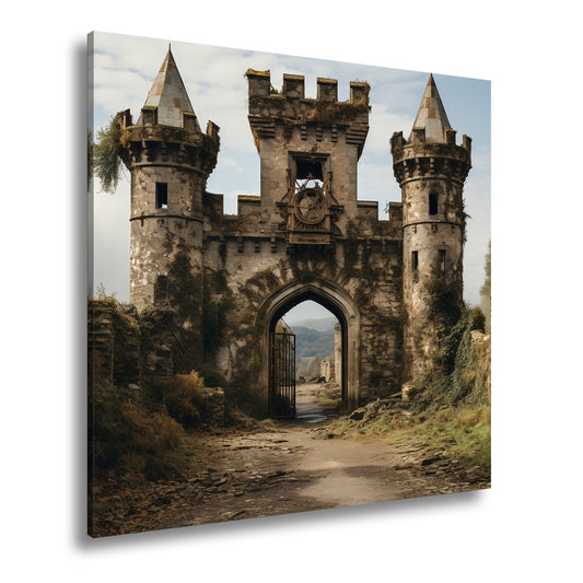 Leinwandbild Verfallenes Burgtor flüstert Geschichten vergangener Zeiten.