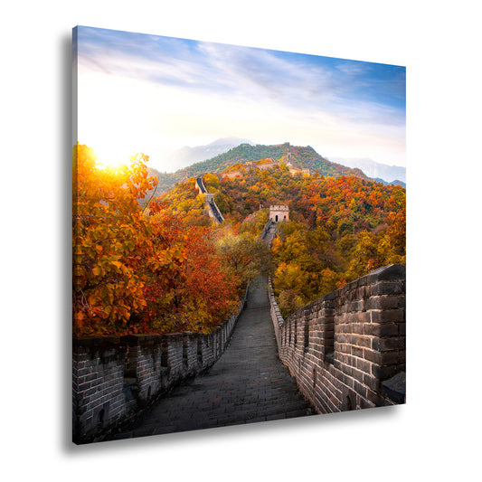 Leinwandbild Herbstglanz an der Großen Mauer – Geschichte im Farbenmeer.