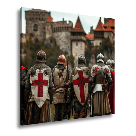 Leinwandbild Ritter vor Burg – bereit für Ehre, Kampf und Legende.
