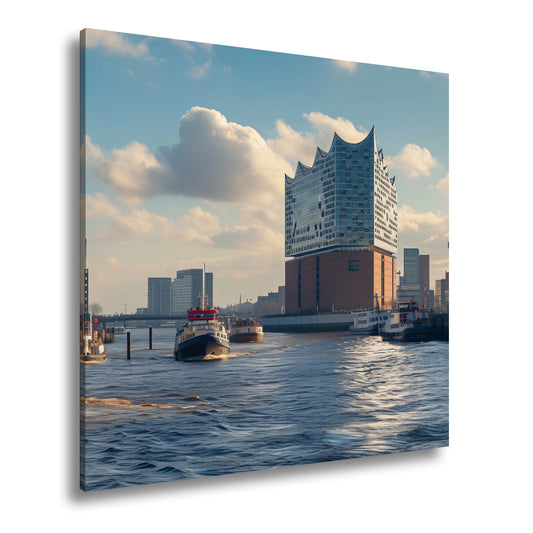 Leinwandbild Gläserne Wellen – die Elbphilharmonie am Hafenrand.