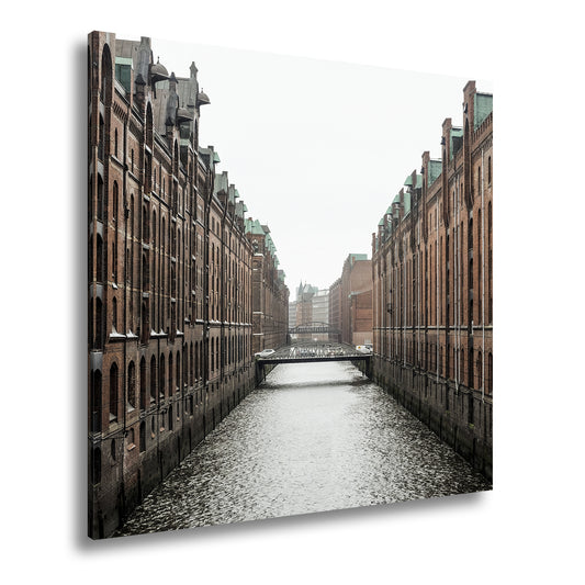 Leinwandbild Backsteinfluchten am Wasser – Hamburgs stille Symmetrie.