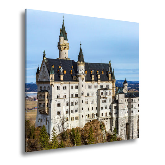 Leinwandbild Märchenschloss auf Felsen – Neuschwanstein in winterlicher Pracht.