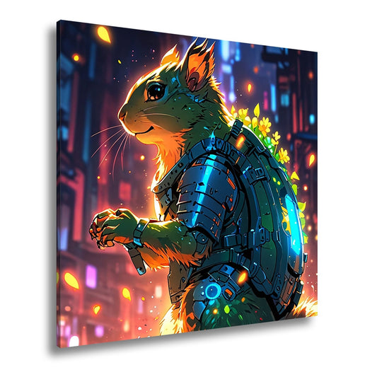 Leinwandbild Fantasy XXL – Cyber-Hamster in futuristischer Blumenwelt