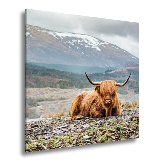 Leinwandbild Highland-Rind – Majestätische Bergkulisse XXL