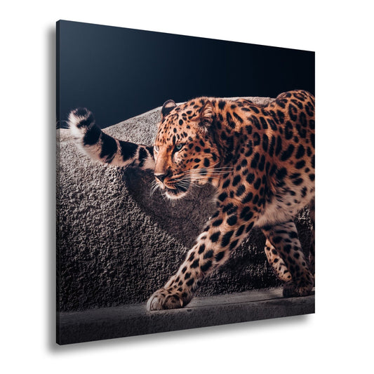 Leinwandbild Leopard auf leisen Pfoten – Spiel aus Licht & Schatten XXL
