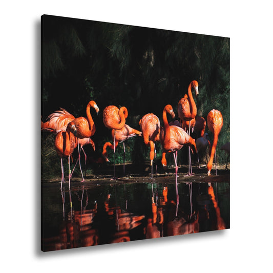 Leinwandbild Leuchtende Flamingos – Spiel aus Licht & Schatten XXL
