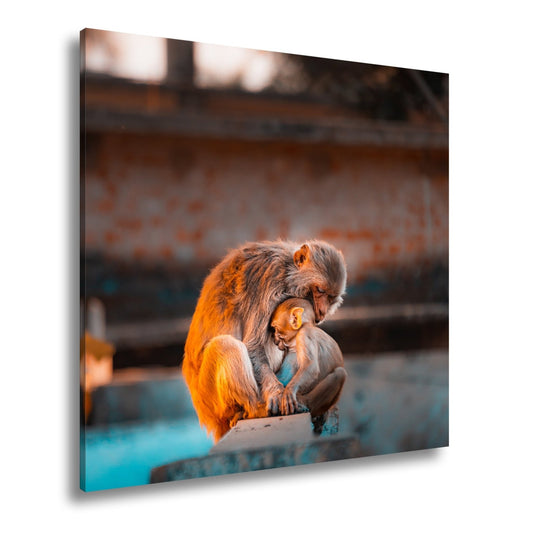 Leinwandbild Zärtliche Affenliebe – Goldenes Abendlicht XXL