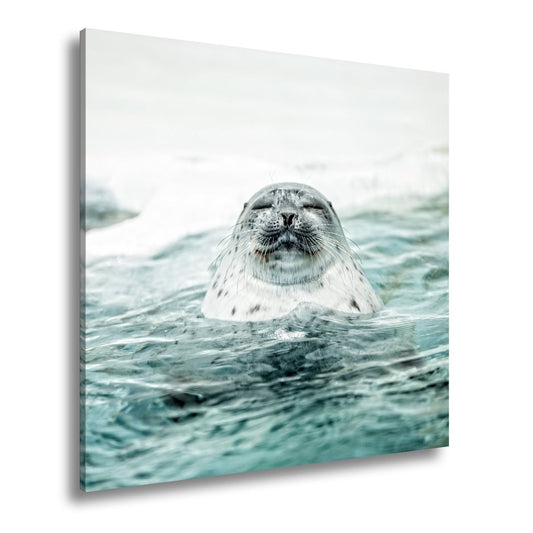 Leinwandbild Entspannte Robbe – Eisiges Wasser XXL Wandbild