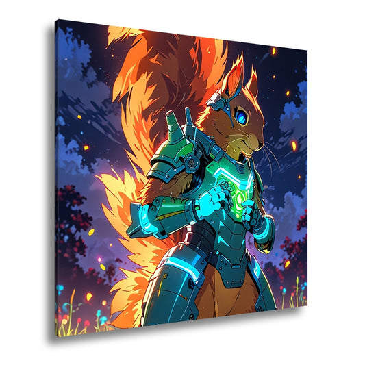 Leinwandbild Fantasy XXL – Tech-Eichhörnchen im nächtlichen Blütenfeld