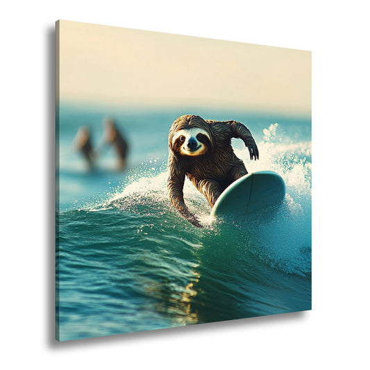 Leinwandbild Faultier auf Welle – Lässiger Surf-Style XXL