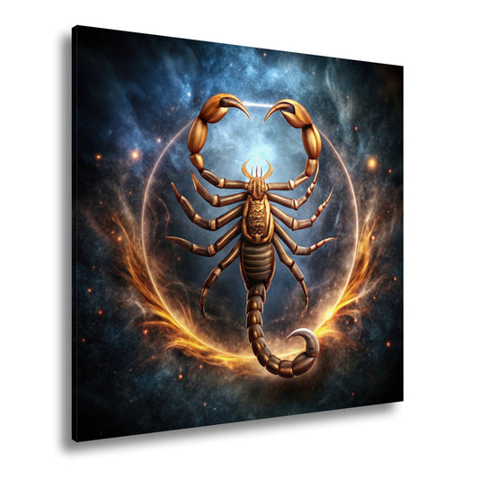 Leinwandbild Goldener Skorpion – Kosmischer Hintergrund XXL Wandbild