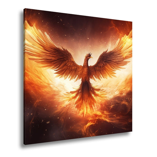 Leinwandbild Phönix XXL – Feuervogel erhebt sich im Flammenmeer